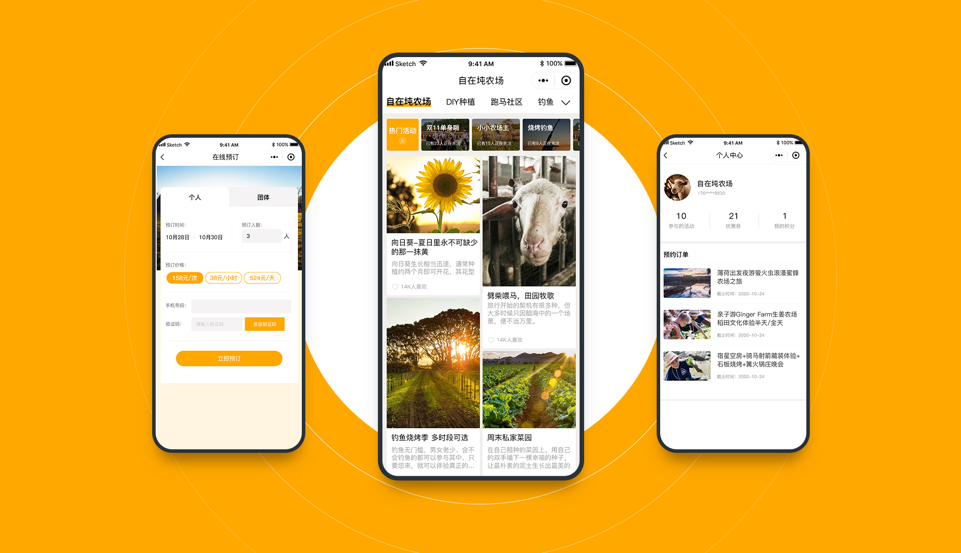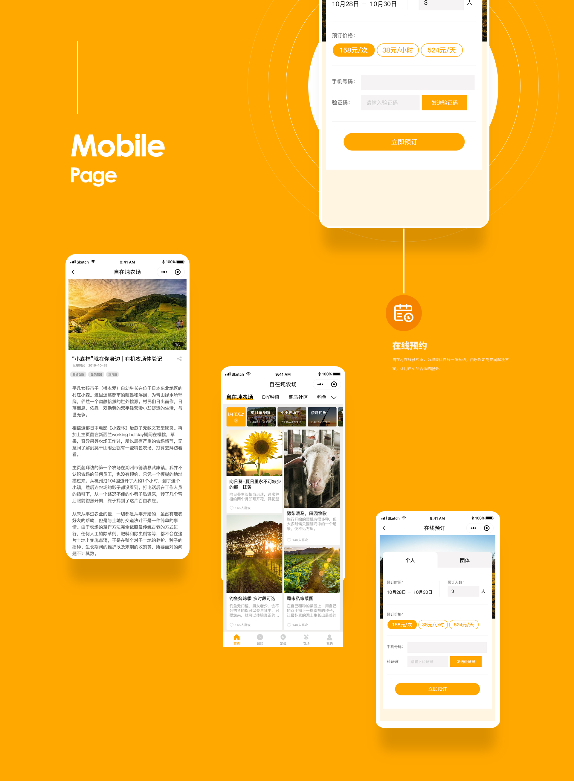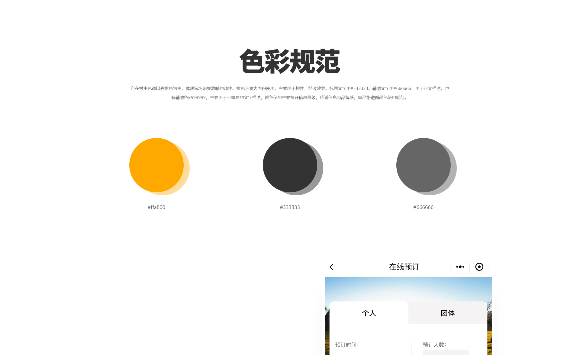 “自在村”旨在探求每位客户对于“自在”的具体需求和具体理解,逐步打造为一处“ 自在"空间,使每位客户都能在忙碌的城市生活外寻求到- -处完全属于自己的独处或相处环境。主色采用了亮橙色,给人一种阳光温暖的感觉。体现出自在村农场的品牌调性。