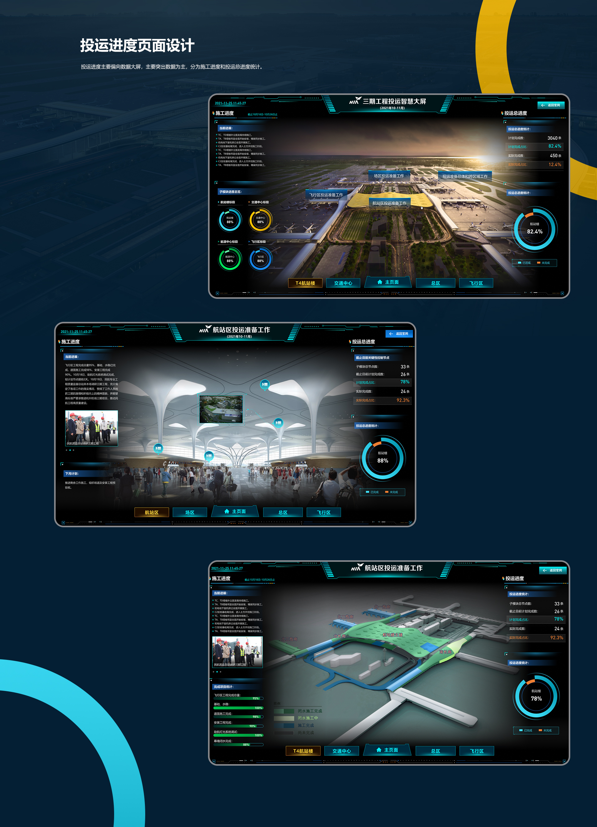杭州萧山国际机场三期扩建工程,计划新建建筑物面积达150万平方米,核心项目是新建航站楼(T4)及陆侧交通中心航站楼。三期扩建项目投运后,杭州萧山国际机场将成为华东地区第二大航空枢纽。我们主要负责打造线上投运进度跟进,统计数据,直观了解整个项目进展。提高管理人员效率。
