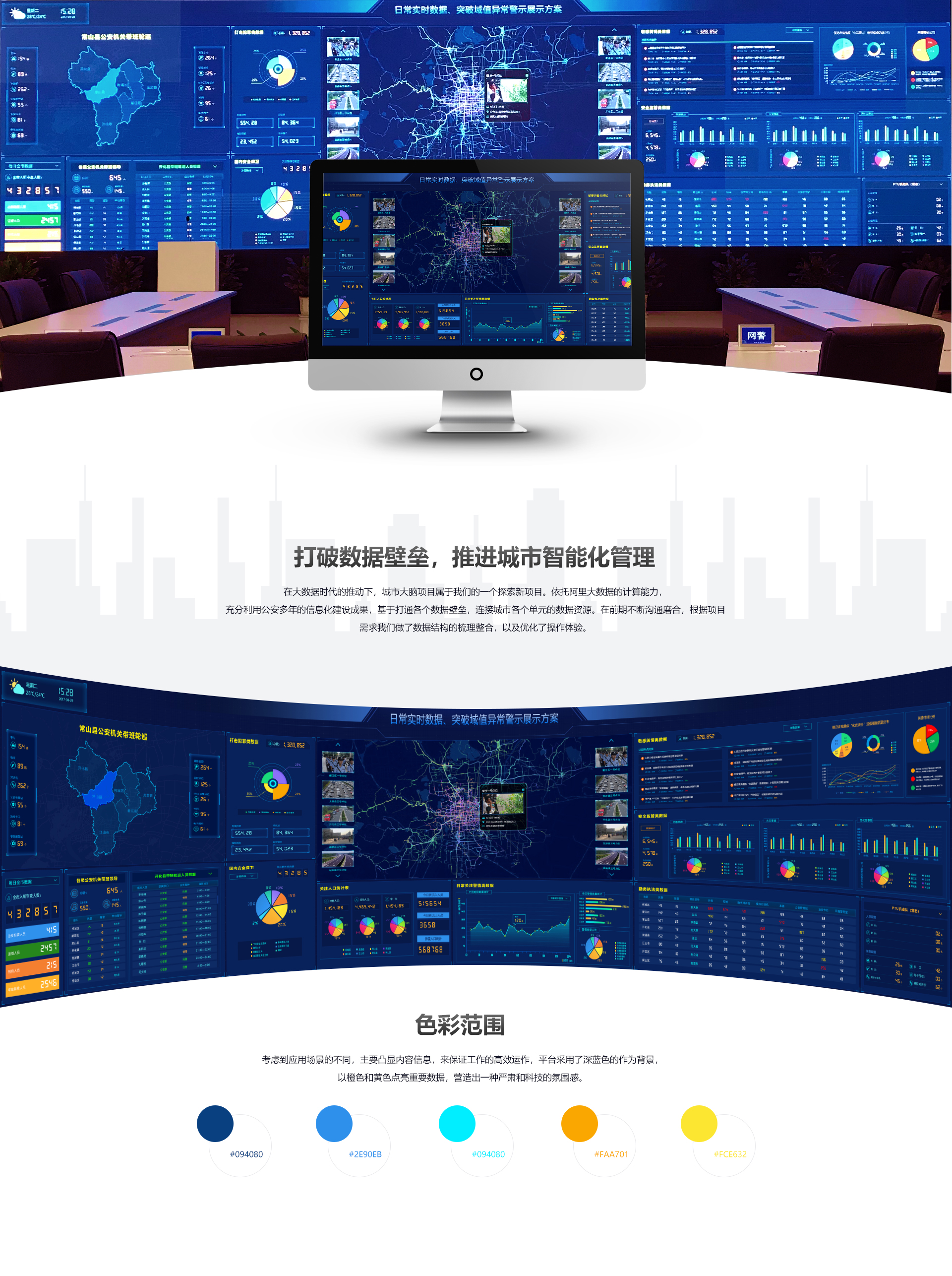 乐邦作为衢州“雪亮工程”项目建设的集成方,依托阿里云ET城市大脑计算能力,充分利用公安多年的信息化建设成果,配合衢时代打造了云计算大数据基础平台,承担了全流程的建设工作。直观、充分地展现城市的整体态势,真正帮助决策者运筹帷幄。